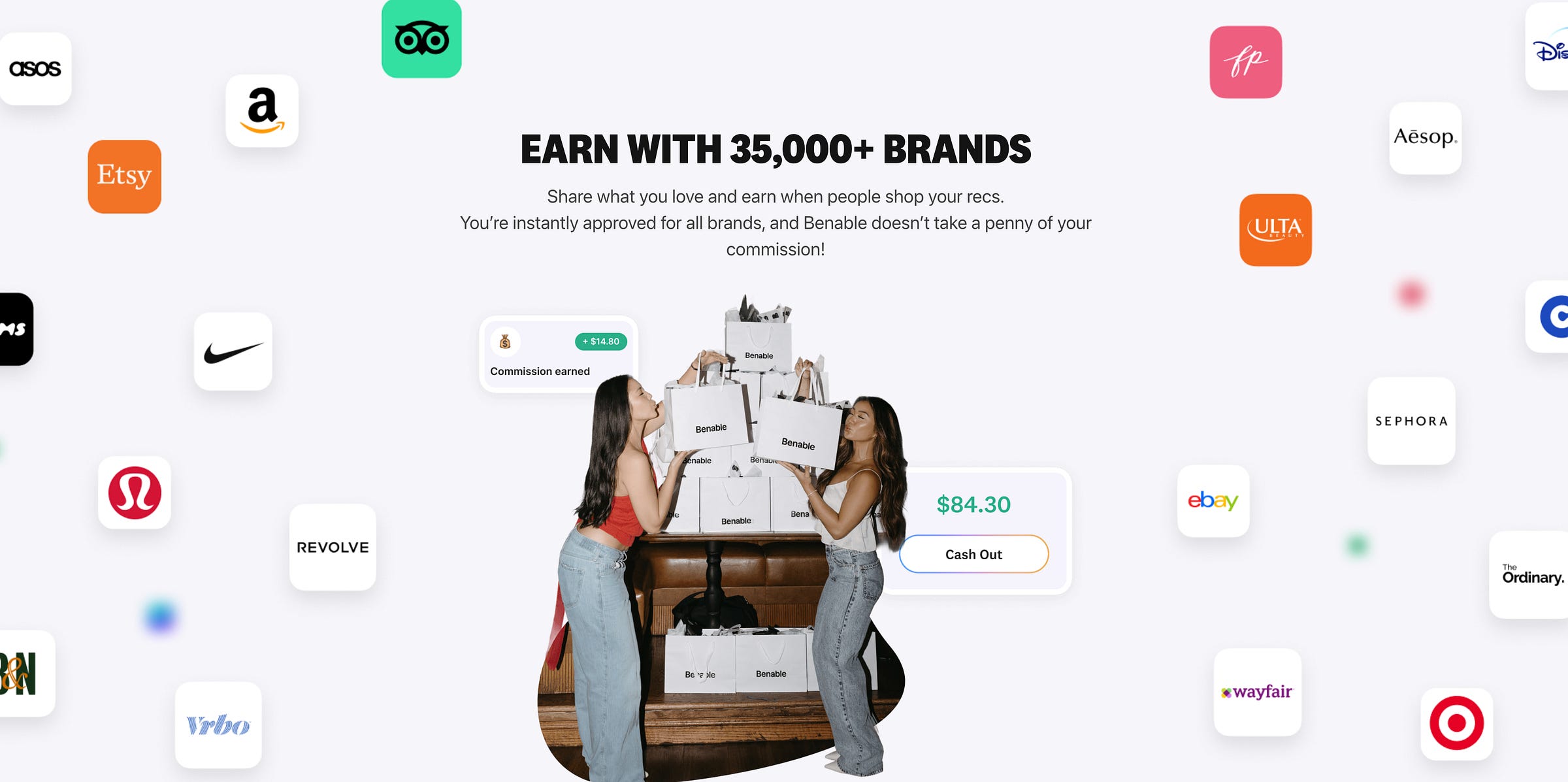 Benable now plugs into over 35,000 brands, everything from Nike and Amazon, to software tools, travel sites, kitchen gadgets, booksellers.