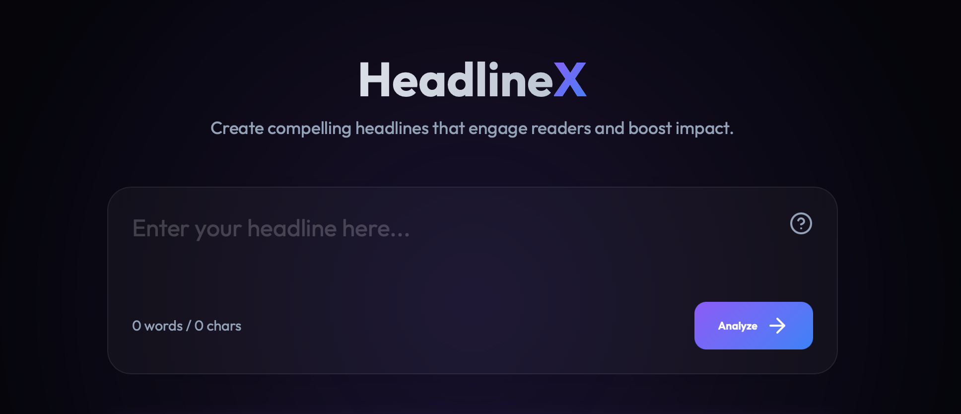 HeadlineX is a lightweight and simple headline analyzer that gives us some insights into our headline and some suggestions to improve.